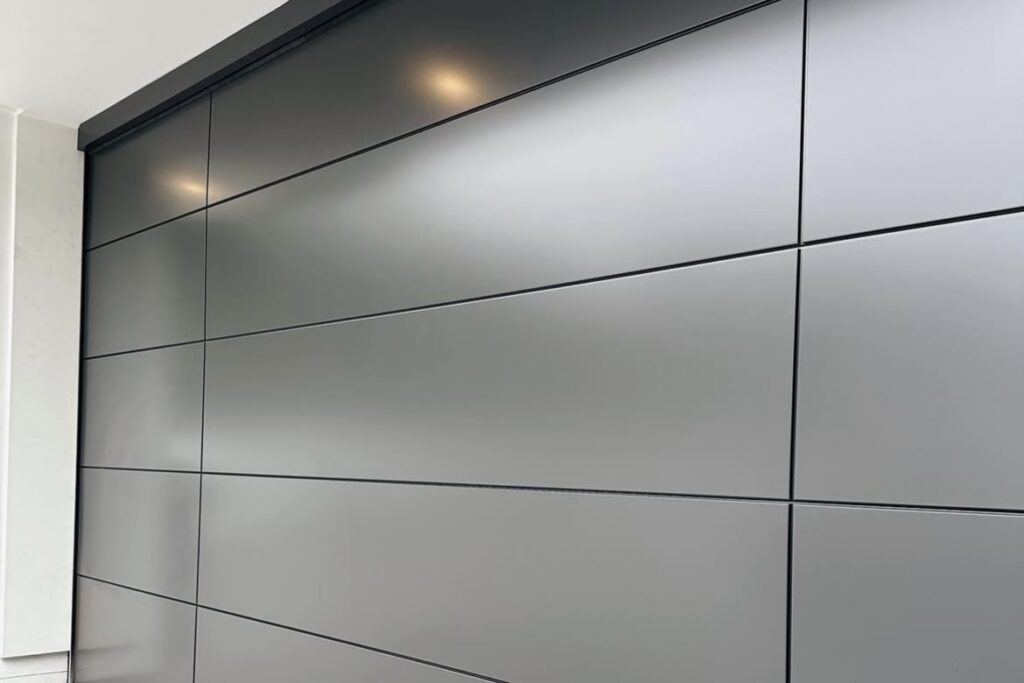 Our ALU-ZINC garage door offers a sophisticated and elegant aesthetic. The contrast between the deep black and subtle aluminium surface creates a visually appealing balance. This adds a touch of modernity and luxury to your home, making it feel both bold and serene at the same time.